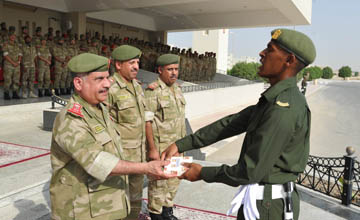 Manama, Oct. 11 (BNA): National Guard's Director of Staff, Major-General Shaikh Abdulaziz bin Saud Al Khalifa, has patronized the graduation of ceremony held in conclusion of one of the new recruits training sessions.