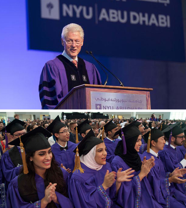 NYUAD bestowed two honorary awards, the Global Leadership Award to President Clinton for his efforts to build a more responsible, just, and peaceful globe, and the Presidential Medal to Khaldoon Khalifa Al Mubarak in honour of his outstanding service to the University.