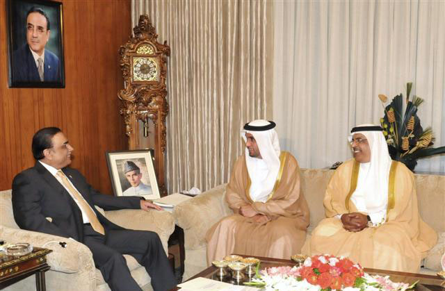 Receiving the UAE Red Crescent Authority (RCA) delegation at the Presidential Palace recently, Zardari reiterated that the UAE is one of the main partners to his country in the field of development and necessary services in the regions affected by the natural disasters in Pakistan. He added that the UAE had shouldered huge developmental role in the areas of housing, education, health and basic services.
