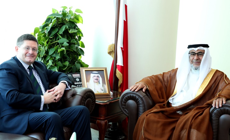 Manama, Sept. 17 (BNA): Parliament Affairs Minister Ghanim bin Fadhel Al Buainin, received the newly appointed British Ambassador to Bahrain Roderick Drummond. The minister praised the historical relations between Bahrain and the UK, wishing the ambassador success in his diplomatic mission. Ambassador Drummond affirmed his country's keenness to further boost cooperation with the Kingdom, praising the cooperation of officials in Bahrain for the benefit of the two friendly countries.