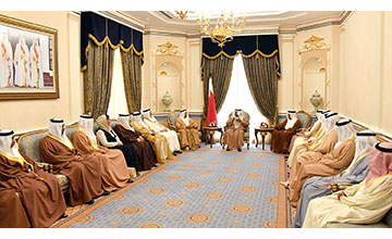 HRH the Prime Minister was speaking as he received at Gudaibiya Palace today members of the royal family, officials and economic figures. He discussed with them various issues, lauding cooperation between the executive and legislative branches to achieve citizens’ aspiration for more progress and prosperity. He affirmed Bahrain’s development momentum nationwide through the implementation of many projects in many fields, including mainly housing, education, health and infrastructure. He also stressed the government’s keenness to ensure those projects are carried out according to high quality standards to meet citizens’ aspirations.