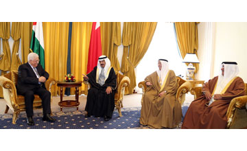 Manama, Apr. 11 (BNA): His Royal Highness Prime Minister Prince Khalifa bin Salman Al Khalifa received at his palace in Riffa today Palestinian President Mahmoud Abbas and his accompanying delegation. They stressed the need for the Arab people to unite their discourse regarding the Palestinian issue, especially in light of global developments and the positive change in major countries' stances towards the Arabs and their issues.