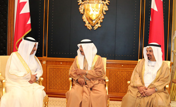 Manama, May 10 (BNA): His Royal Highness Prime Minister Prince Khalifa bin Salman Al Khalifa has affirmed that the Gulf Cooperation Council (GCC) countries have adopted stronger stances commensurate to the size of the challenges faced by the region, and succeeded in overcoming the conspiracies targeting their security and stability, stressing that GCC states, thanks to the wisdom of their leaders and high awareness of their peoples, in foiling all conspiracies and plots. HRH Premier stressed that the consolidation of GCC countries' cooperation with big countries have become necessary, as the latter are showing understanding and adopting a positive vision towards what is going on in the region, especially regarding terrorism and the attempts by foreign sides to subvert its countries' security. The Prime Minister made the statements while receiving Saudi Ambassador to Bahrain, Dr. Abdulla bin Abdul Malik Al-Sheikh, and UAE Ambassador to Bahrain, Abdul Ridha Abdulla Al-Khoury. HRH Premier praised eth deep-rooted fraternal relations between Bahrain and both Saudi Arabia and the UAE, stressing that the steady growth of cooperation between the three countries in various fields has entitled relations between them to become an example to emulate. The Premier lauded the honourable stances of Saudi Arabia and the UAE in support of the Kingdom under all circumstances. HRH Premier reviewed the two envoys the latest regional and global developments, stressing that the rapidly-unfolding events and the challenges they create require stepping up bilateral, regional and international meetings at all levels to push cooperation forward, being the best means to be able to face the challenges.