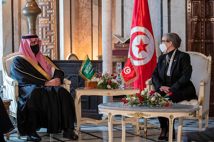 Tunis, March 02, 2022, SPA -- Prince Abdulaziz bin Saud bin Naif bin Abdulaziz, Saudi Minister of Interior, has met here with Tunisian Prime Minister Najla Bouden.