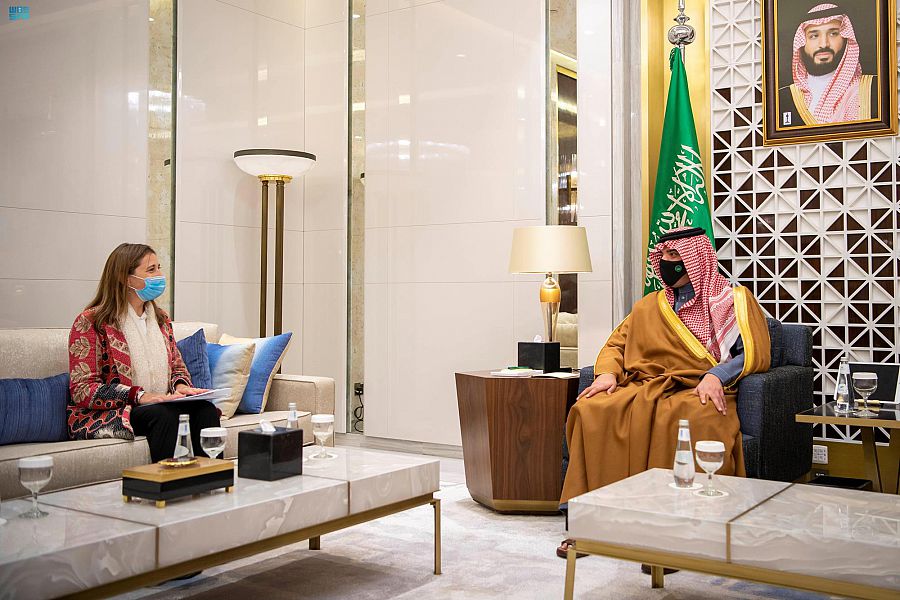 Riyadh, February10, 2022, SPA -- Prince Abdulaziz bin Saud bin Naif bin Abdulaziz, Minister of Interior, received here UN Resident Coordinator to the Kingdom of Saudi Arabia Nathalie Fustier. During the meeting, they discussed a number of issues of common interest. --SPA