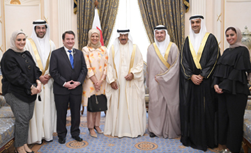 Manama, Apr. 22 (BNA): His Royal Highness Prime Minister Prince Khalifa bin Salman Al Khalifa today received the newly elected Board of Directors of the Bahrain Medical Society (BMS) led by Chairperson Dr. Ghada Al-Qassim.