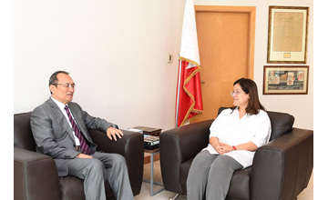 Manama, July 23 (BNA): Royal Court's Special Envoy Sameera Ibrahim bin Rajab today received Ambassador of the People’s Republic of China to the Kingdom of Bahrain, An Wa’er. The Royal Court's special envoy welcomed the recently-appointed ambassador, wishing him success in his diplomatic mission in the Kingdom to develop and boost the excellent bilateral ties and affirmed the two countries keenness to consolidate and further boost these ties to vaster vistas of cooperation to achieve their shared interests. The Chinese ambassador expressed his gratitude and appreciation to the Royal Court Special Envoy for the amicable reception and affirmed his keenness and efforts to develop and further boost the bilateral ties in all fields. They discussed topics of shared interest for both friendly countries.