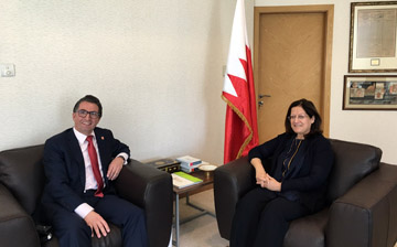 Manama, Mar. 20 (BNA): The Special Envoy in the Royal Court, Sameera Ebrahim bin Rajab, on Sunday received the Swiss Consul General to the Kingdom of Bahrain Humbert Vincent Buemi, wishing him success in bolstering and developing the bilateral ties, and citing the keenness on the part of both countries on consolidating these ties to attain vaster horizons of cooperation to achieve their shared interest.
