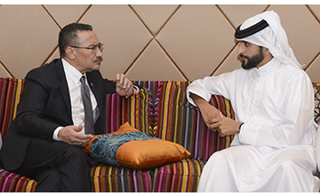 Manama, July 20 (BNA): Royal Guard Commander, Brigadier-General, HH Shaikh Nasser bin Hamad Al Khalifa, received at his Majlis in the Al-Wadi Palace, the Malaysian Minister of Defence and Minister with Special Functions, Hishammuddin Tun Hussein, and his accompanying delegation. HH Shaikh Nasser welcomed the Malaysian Minister, and lauded the depth of the Bahraini-Malaysian relations of friendship.