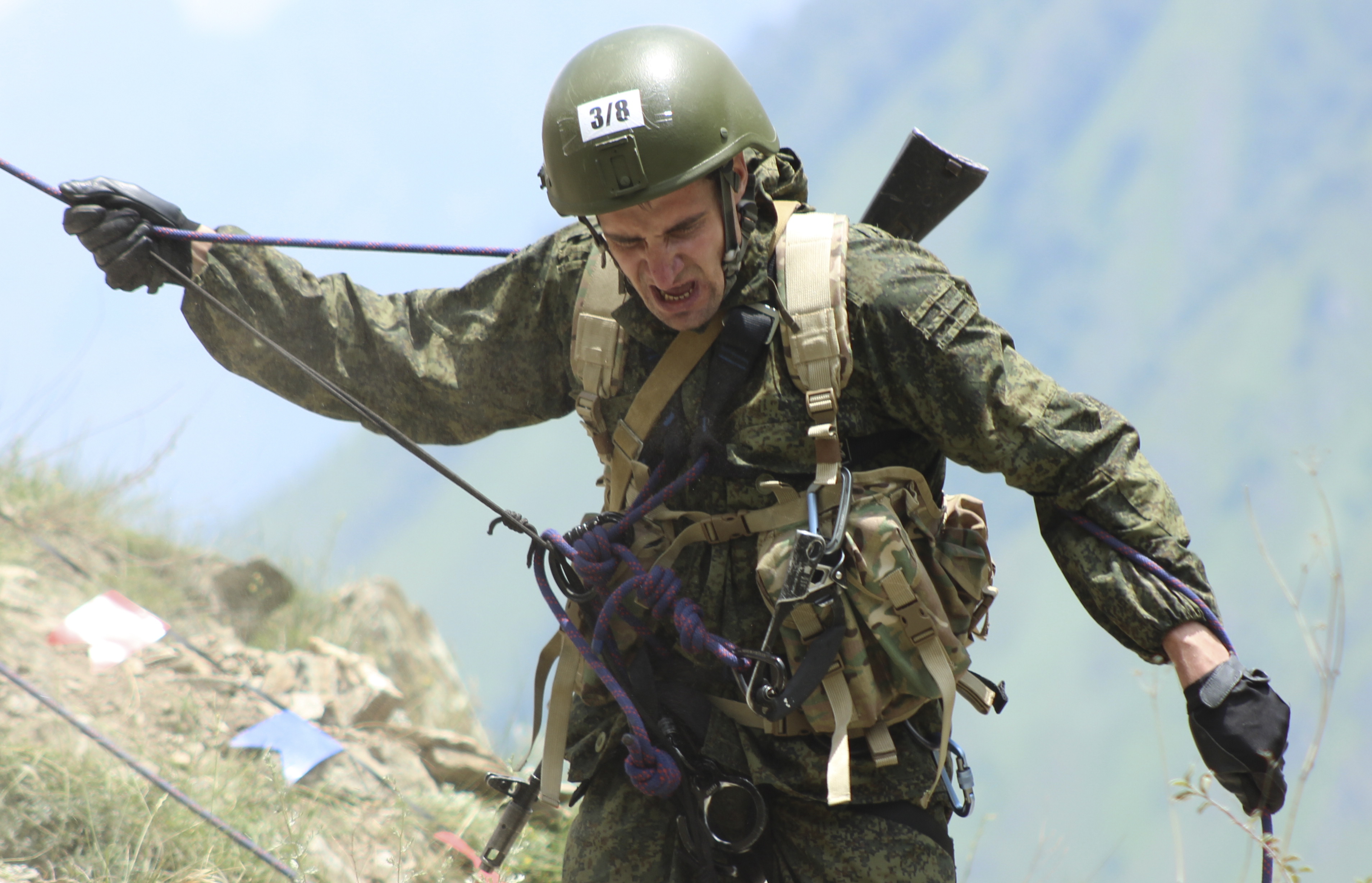 At the first stage of the drills, the commandos will negotiate rocky sections and also use various methods to lift and bring down a notionally injured person on the complex rocky terrain of the Western Sayan mountain range and evacuate him with the help of pack animals. All the participants in the drills are supplied with Russian mountain gear.