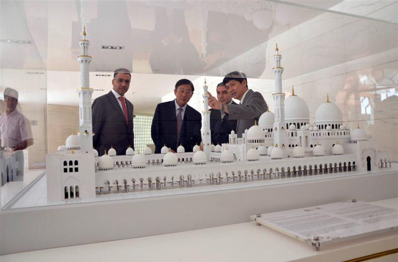 Beijing, June 5, 2012 (WAM) - A delegation from the Sheikh Zayed Grand Mosque Centre (SZGMC) in Abu Dhabi, headed by Mr. Yousif Al Obaidli, Director of the SZGMC, presented a scale model of Sheikh Zayed Grand Mosque to the Sheikh Zayed Bin Sultan Al Nahyan Centre for Arabic Language and Islamic Studies in Beijing, the Capital of China, in the presence of Omar Ahmad Al Bitar, the UAE Ambassador to the Republic of China.