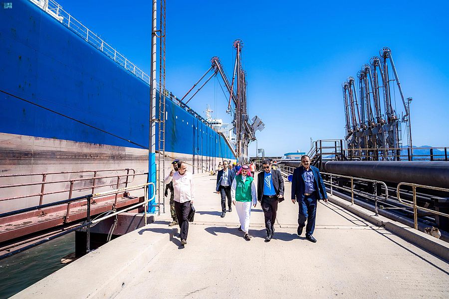 Aden, February 06, 2022, SPA -- The seventh shipment of the Saudi oil derivatives grant provided by the Kingdom of Saudi Arabia, represented by the Saudi Development and Reconstruction Program for Yemen (SDRPY), to Yemen has arrived in Aden, with quantities amounting to 60,000 metric tons of diesel, bringing the total amount of oil derivatives supplied to Yemen since the beginning of the grant to 596,000 metric tons; to meet the monthly needs provided by the Yemeni power stations.