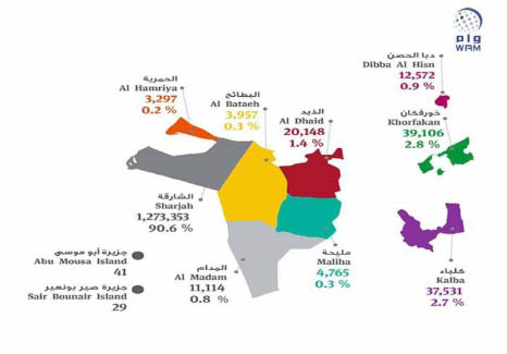 The number of non-national residents is 1,230,417, – 834,542 males and 395,875 females – who form 87 percent of the overall population, said the Department of Statistics and Community Development in Sharjah (DSCD) as it unveiled the results of the Sharjah Census carried out in 2015, in line with the directives of H.H. Dr. Sheikh Sultan bin Mohammed Al Qasimi, Supreme Council Member and Ruler of Sharjah. The Sharjah Census provides precise statistical data in terms of population size, distribution, demographic make-up and socio-economic characteristics.