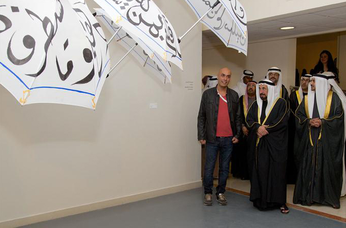 Accompanied by H.H. Sheikh Sultan bin Mohammed bin Sultan Al Qasimi, Crown Prince and Deputy Ruler of Sharjah, the Ruler of Sharjah toured various galleries of artists from Argentina, Azerbaijan, Italy, Saudi Arabia, Iran, Pakistan, Germany, Iraq, Egypt and Turkey.