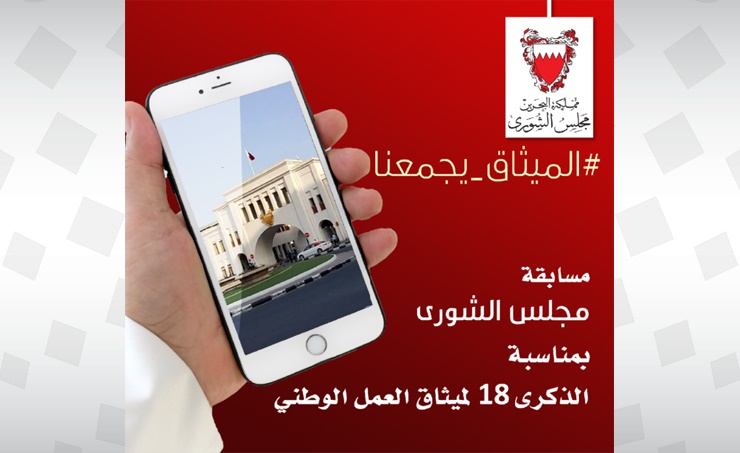 Manama, Feb.15 (BNA):The Shura Council has unveiled a competition as part of festivities marking the 18th anniversary of the National Action Charter “The contest was launched on Istagram (@shurabahrain in a bid to engage the community and foster the values of demorcary and patriotic belonging”, Said Shura Council Secretary-General Osama Ahmed Al-Asfoor. He paid tribute to His Majesty King Hamad bin Isa Al-Khalifa who initiated the National Action Charter which was endorsed by the people of Bahrain by a sweeping majority of the votes”, he said. He urged the public wishing to take part in the competition to vist the Shura Council portal and get update about details and regulations of the contest. The competition consists of best photo, best film, best design and best animation. The Shura Council General Secretariat has allocated BD400 for the winners.