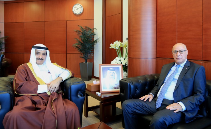 Manama, July 7 (BNA): President of the Survey and Land Registration Bureau (SLRB) Shaikh Salman bin Abdullah bin Hamad Al Khalifa received today outgoing Moroccan Ambassador to Bahrain Ahmed Rashid Khatabi. He stressed historic relations between Bahrain and Morocco and their perpetual growth thanks to the care of His Majesty King Hamad bin Isa Al Khalifa and King Mohammed VI. He praised the role of the Moroccan ambassador in bolstering bilateral fraternal relations and cooperation at all levels.