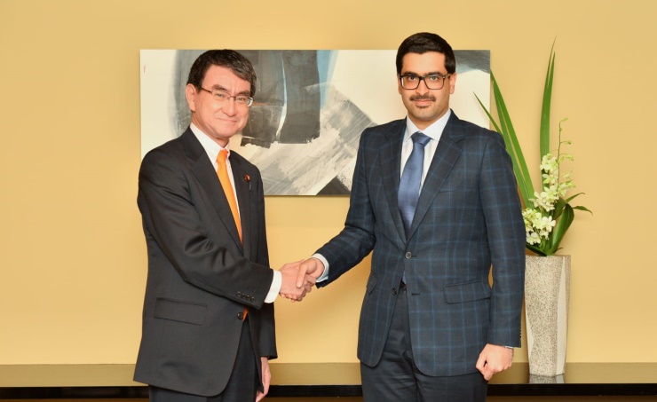 Tokyo, Mar. 25 (BNA): Within the framework of an official visit to Japan, Southern Governor Shaikh Khalifa bin Ali bin Khalifa Al Khalifa met with Japanese Foreign Minister Taro Kono, in the presence of Bahraini Ambassador to Japan Ahmed Al Dusari and Japanese Ambassador to Bahrain Hideki Ito. The Japanese Foreign Minister hailed the visit of the Southern Governor and his accompanying delegation to Japan which reflects deep-rooted relations of friendship and cooperation between both countries. He praised the advanced level of the Southern Governorate in Bahrain and its hosting of vital projects and programmes, wishing the visit every success in serving both countries and peoples. The Southern Governor lauded the directives of His Majesty King Hamad bin Isa Al Khalifa and the support of His Royal Highness Prime Minister Prince Khalifa bin Salman Al Khalifa and His Royal Highness Prince Salman bin Hamad Al Khalifa, Crown Prince, Deputy Supreme Commander and First Deputy Premier. He underscored deep-rooted relations between Bahrain and Japan and their perpetual growth at all levels. He also pointed out the role of the Southern Governorate in the kingdom’s development process, stressing its numerous accomplishments in various fields.