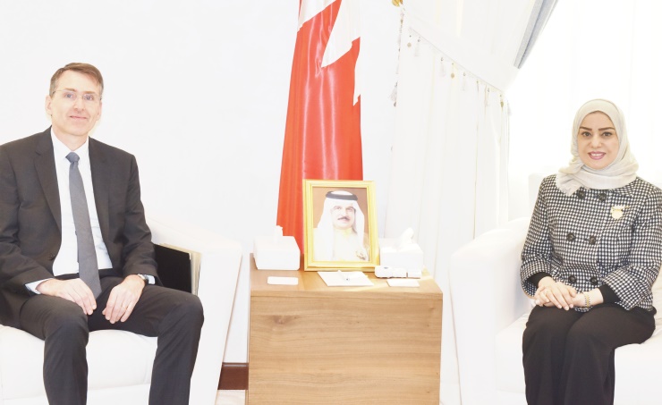 Manama, Feb. 18(BNA): Council of Representatives Speaker Fawziya bint Abdulla Zainal received German Ambassador to Bahrain Kai Thamo Boeckmann and discussed bilateral relations and growing cooperation between the two countries. The Speaker commended solid relations binding the Kingdom of Bahrain and German, stressing keenness on boosting the volume of trade exchanges and activating the parliamentary friendship committees to enhance cooperation. She underline Bahrain’s keen interest in strengthening partnership, expanding cooperation and increasing economic and investment exchanges. The German ambassador congratulated Zainal as the first woman to hold the position of Speaker, which represents a major boost the democratic process in Bahrain and Bahraini women. He delivered to the Speaker an official invitation to visit Germany, hailing Bahrain’s development strides. He reiterated his country’s on supporting Bahrain’s security and stability.