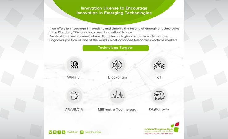 Manama, Oct. 11 (BNA): The Telecommunications Regulatory Authority (TRA) launched a new Innovation License to encourage innovations and simplify the testing of emerging technologies in the Kingdom and develop an environment where digital technologies can thrive underpins Bahrain’s position as one of the world’s most advanced telecommunications markets. The Innovation Licence enables live testing of new technologies and services through a light-touch regulatory environment known as a Regulatory Sandbox. The TRA aims to provide stakeholders with clarity and confidence by enabling a flexible environment. "The TRA believes that innovation is the key to maintaining leadership in the digital space. Accordingly, we encourage companies, universities, and other stakeholders to test and trial new wireless technologies and services in Bahrain," TRA General Director Philip Marnick said. We are confident that this initiative will further strengthen Bahrain’s position as a technology and regulatory innovator. It will also allow the TRA to continue supporting and collaborating with organizations across the telecommunications industry." Holders of an Innovation Licence will be able to carry out live trials of emerging technologies with consumers to gain insight into how the new products and services may work in the market in addition to having quick access to the radio spectrum for wireless tests. The Innovation License fees will be affordably priced at BHD30.