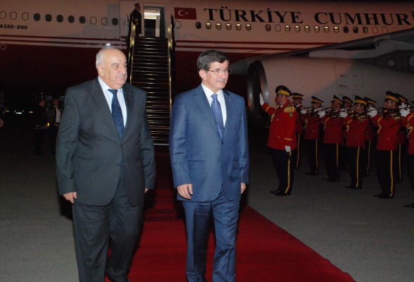 Turkish PM Ahmet Davutoglu arrives in Azerbaijan on official visit