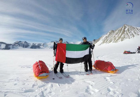 ABU DHABI, 15th December, 2016 (WAM) -- Two Emiratis have raised the UAE flag in Antarctica, as part of a 10-day international expedition which explored renewable and alternative energy sources around the world. Saeed Mohamed Al Nuaimi and Amira Al Hammadi also put up photographs of President His Highness Sheikh Khalifa bin Zayed Al Nahyan, His Highness Sheikh Mohammed bin Rashid Al Maktoum, Vice President, Prime Minister and Ruler of Dubai, and His Highness Sheikh Mohamed bin Zayed Al Nahyan, Crown Prince of Abu Dhabi and Deputy Supreme Commander of the UAE Armed Forces. Al Nuiami said that the trip aimed to raise awareness on environmental issues and the effects of global warming, as well as identify the level of damage caused by increasing water levels in the oceans, and seek renewable and alternative energy solutions. – Emirates News Agency, WAM -http://www.wam.ae/en/news/emirates/1395304652717.html