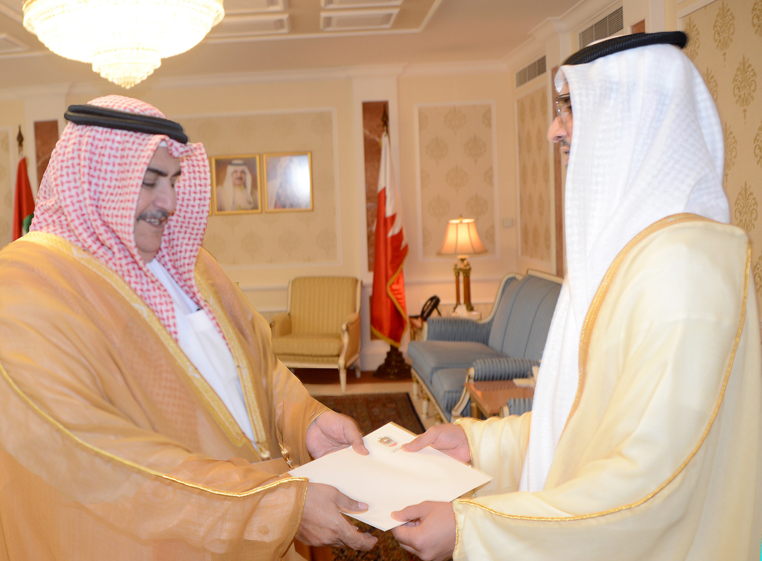 Manama, Apr. 23 (BNA): Foreign Affairs Minister Shaikh Khalid bin Ahmed bin Mohammed Al Khalifa received Shaikh Sultan bin Hamdan bin Zayed Al Nahyan, who presented a copy of his credentials as the newly-appointed Ambassador of United Arab Emirates (UAE) to Bahrain.