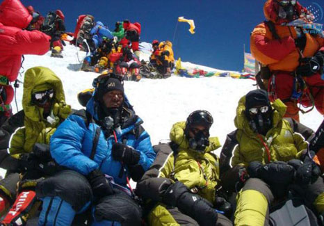 To achieve success, the team had to endure almost 17 hours and1600 meters of ascent from camp 3, resting only briefly at camp 4 in the "death zone", dealing with temperatures down to - 30 C and climbing in restrictive oxygen masks and down suits.