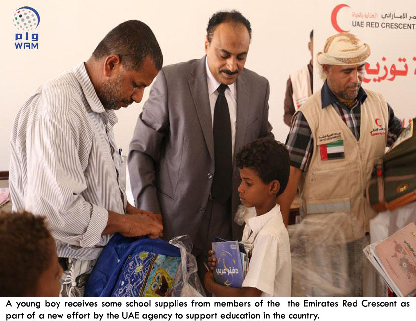 The effort will cover all districts of Hadramaut where the Emirates Red Crescent team will oversee the distribution of supplies, the head of the UAE relief team in Hadramaut Matar Al Ketbi said, and stressed that the UAE takes a keen interest in supporting education and infrastructure projects and helping underprivileged families who cannot afford schooling for their children.