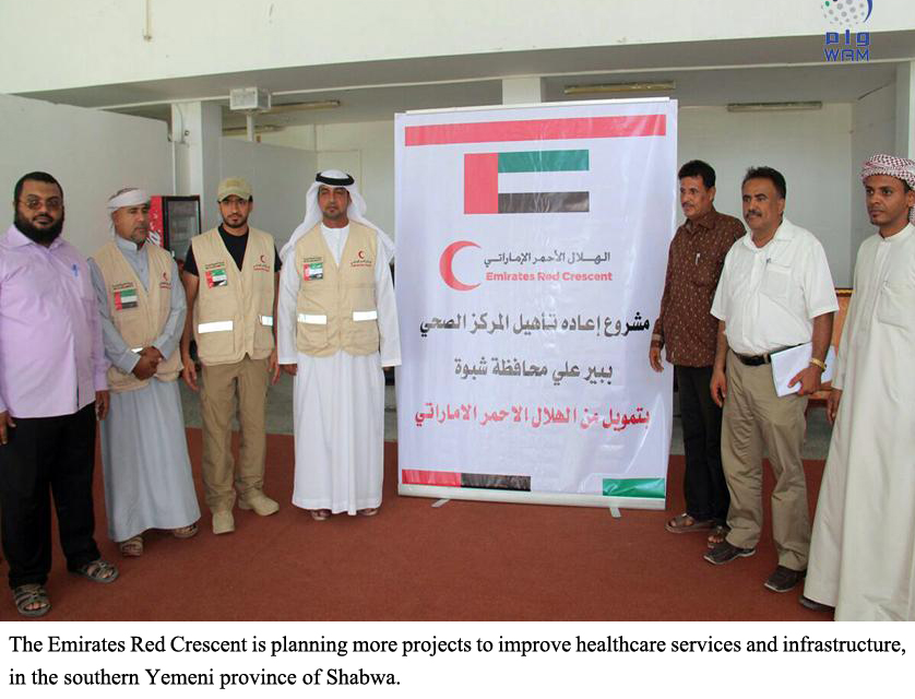 SHABWA, 28th December, 2016 (WAM)-- The Emirates Red Crescent is planning more projects to improve healthcare services and infrastructure, address acute shortage in medical supplies, and provide more humanitarian aid in the southern Yemeni province of Shabwa, the UAE's humanitarian arm announced today.