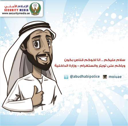 The Ministry of Interior's Qannas character, a wise-looking person, communicates with followers on the ministry's Twitter account (@Abudhabipolice) and Instagram (MOIUAE), to promote moral social values and raise awareness. Qannas is a work, education and progress-loving character. He tackles purposeful topics for the benefit of society members within a police and security-related awareness framework.