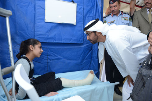 Dr. Adel Al Shameri, Executive Director of the Hospital, briefed Sheikh Hamdan on the world-class diagnostic, curative and preventive services the health facility provides to thousands of Syrian refugees. Sheikh Hamdan was also informed about the operational plan of the hospital and coordination with Jordanian authorities.