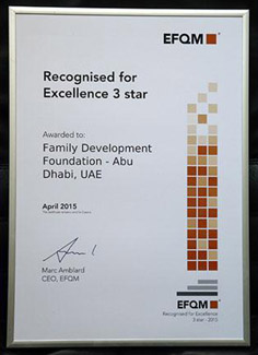 ABU DHABI, 20th May, 2015 (WAM) -- The Family Development Foundation (FDF) has received a certification of global excellence from the European Foundation for Quality Management (EFQM), based on the results of the field assessment carried out by the EFQM experts in April according to the latest European excellence standards for 2013.