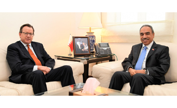 Manama, June 24 (BNA): Minister of Works, Municipality Affairs and Urban Planning Essam bin Abdullah Khalaf received the US Ambassador to Bahrain Justin Siberell. They discussed outstanding relations between the two friendly countries and ways of bolstering them. The Works, Municipality Affairs and Urban Planning Minister lauded the ambassador’s efforts to boost bilateral relations, wishing him success in his duties. The US ambassador praised solid ties between Bahrain and the USA, hailing the efforts of the Works, Municipality Affairs and Urban Planning Ministry to develop the kingdom’s infrastructure, wishing Bahrain and its people more growth and prosperity.