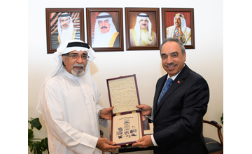 Manama, Jun. 9 (BNA): Works, Municipalities Affairs and Urban Planning Minister, Essam bin Abdulla Khalaf, has received writer Kamal Bukamal. The writer presented the minister with a copy of his book titled "Stars in the City Shadows" which highlights the history of the Isa Town Club, and its board chairmen and members since its establishment. The writer briefed the minister about his future book in which he will focus on 100 personalities who had contributed significantly to Isa Town’s history. The minister expressed sincere thanks and appreciation to the author for the efforts he had exerted in compiling his book, and for raising topics related to Bahrain’s history, wishing him further success.