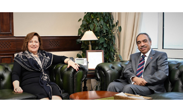 Manama, July 10 (BNA): Works, Municipalities Affairs and Urban Planning Minister Essam bin Abdalla Khalaf received Egyptian Ambassador to the Kingdom of Bahrain Suha Ibrahim Al-Far and reviewed with deep-rooted fraternal relations. He commended her efforts to develop joint ties in all fields and hailed strong fraternal ties binding Manama and Cairo, wishing her success in performing her diplomatic duties. The two sides discussed means of strengthening joint cooperation and benefiting from Egyptian engineering and consultancy expertise. They also discussed cooperation in the sector of agriculture and animal resources, as well fresh vegetables and fruit exports to Bahrain. The Egyptian envoy hailed solid ties binding the two countries, commended the ministry’s efforts to develop infrastructure in different governorates in Bahrain.