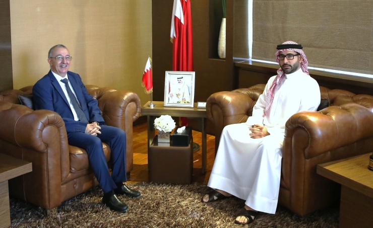 Manama, June 14 (BNA): Minister of Youth and Sport Affairs, Ayman bin Tawfiq Al-Moayed, received the newly appointed Ambassador of the People’s Democratic Republic of Algeria to the Kingdom of Bahrain, Abdulhamid Ahmed Khouja. He welcomed him, lauding growing relations between the two brotherly countries and peoples and wishing him every success in his new diplomatic duties.