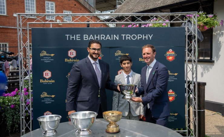 His Highness then presented trophies to the winners of the Bahrain Trophy for each three rounds of the race. His Highness presented the Kingdom Of Bahrain July Stakes (Group 2) Cup to HH Shaikh Sultan Al Deen bin Mohammad bin Salman Al Khalifa, the owner of the winning horse Jasour of the Muhammadiyah Racing, after winning first place in the second race, under the trainer Clive Cox, and led by the jockey Jim Crowley.