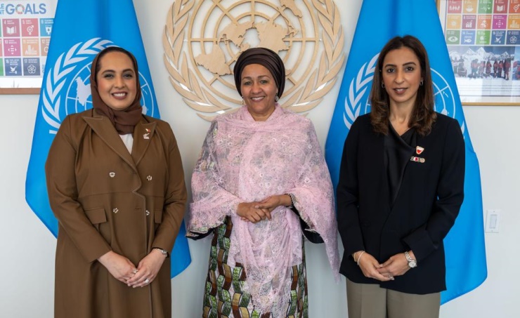 New York, July 21 (BNA): Minister of Housing and Urban Planning, Amna bint Ahmed Al Romaihi, and the Minister of Sustainable Development, Noor bint Ali Al Khulaif, met Amina J. Mohammed, the United Nations Deputy Secretary-General and Chair of the United Nations Sustainable Development Group, on the sidelines of the Kingdom of Bahrain’s participation at the United Nations High-Level Political Forum on Sustainable Development 2023, to present the country’s second Voluntary National Review (VNR) on the progress made towards achieving the sustainable development goals and accelerating the realisation of the 2030 Agenda.