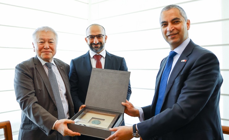 Tokyo, May 10 (BNA): Abdullah bin Adel Fakhro, Minister of Industry and Commerce met Takaaki Yamamoto, President of Daiki Aluminium Industry Co., Ltd. on the sidelines of his official visit to Japan.