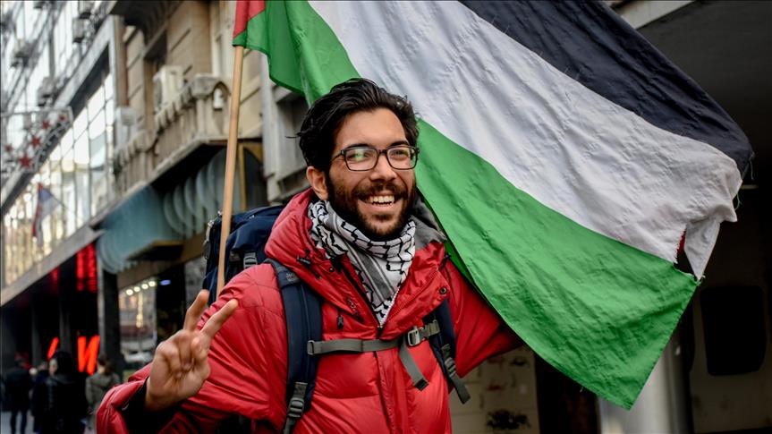 BELGRADE, Serbia A 25-year-old Swedish activist has commenced a treacherous walk from Sweden to Palestine, to raise awareness about human rights violations in the occupied territory. Benjamin Ladraa says he was so moved by a three-week trip to Palestine last April that he decided to "tell the world about the situation in Palestine". "I was shocked by what I saw there, seeing all the walls, soldiers walking along the streets carrying M-60 machine guns. I heard stories about 300 children in prisons, rapes in homes. "After three weeks I returned and wanted to do something to raise awareness about human rights violations in Palestine," said Ladraa, who was born to Jewish parents. After giving up his studies and work, he set out on his 5,000 kilometer journey from Gothenburg, Sweden to Palestine on Aug. 8, last year. Ladraa is always on the move, carrying the Palestinian flag on his back and a keffiyeh, a symbol of Palestinian independence, over his shoulder. Each day is a different experience for him, he says. Sometimes he sleeps in his tent or in a hostel. Dinner may mean eating canned food by a campfire or a meal shared with hosts he meets during his journey. Ladraa sometimes holds lectures, where he tells his audience what he saw during his Palestine trip. With the exception of some standalone incidents, he says most people welcomed him. In Prague, he says, he was detained by guards of the Israeli Embassy because he was carrying a Palestinian flag and pushing a trolley. He was released after a bomb squad ensured was not dangerous. However, the guards scanned his passport and Ladraa fears border troops will not let him enter Palestine. "The plan is to continue through Bulgaria, Turkey, Syria, Lebanon, and again through Syria to Jordan, and if I cannot get into Palestine, I will try to inform the media about it," he said. He posts pictures of his journey on his Facebook and Instagram accounts under #walktopalestine. Ladraa, who occasionally worked for the Red Cross, saved for about a year for this trip. He says he has sold everything he owns. Sometimes he receives donation. He is expected to complete his journey in June or July. "I think everyone can and should give a little time to do something for other people," said Ladraa, who sets off from Belgrade on Saturday.