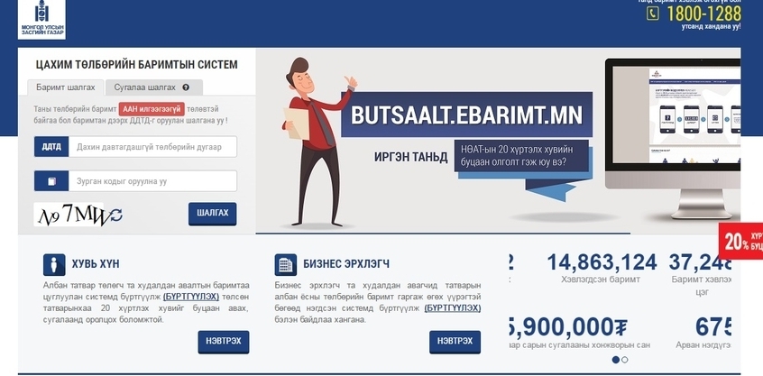 In compliance with the VAT Law of Mongolia, consumers receive a 20 percent refund for their purchased services and goods in a given year. Users registered on ‘ebarimt’ online system and confirmed their identity details will thus receive their refunds within the first quarter of 2018.