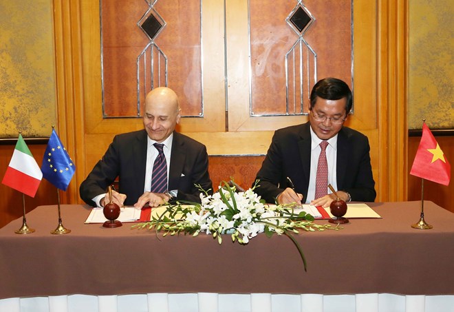 On behalf of the two governments, Vietnamese Deputy Minister of Education and Training Nguyen Van Phuc and Italian Ambassador to Vietnam Antonio Alessandro inked the pact.