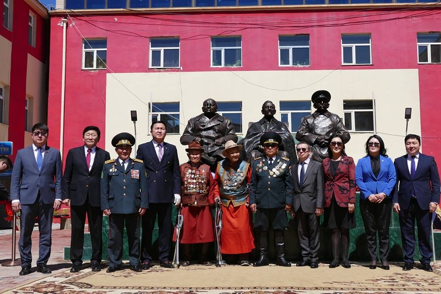 Ulaanbaatar /MONTSAME/ On the occasion of the 72th anniversary of the victory in the Great Patriotic War which is marked on May 9, a monument dedicated to the Yalta Conference of February, 1945 was inaugurated at Ikh Zasag International University. By the initiative of Member of Parliament N.Uchral, statues of Franklin D. Roosevelt, President of the United States, Winston Churchill, Prime Minister of the United Kingdom and Joseph Stalin, Premier of the Soviet Union have thus been sculpted, and sit by the second building complex of the international university now. The inauguration ceremony was attended by honorary guests including Members of Parliament N.Uchral, Ts.Tsogzolmaa and G.Munkhtsetseg, Deputy Minister of Defense T.Dulamdorj, Deputy Minister of Education, Culture, Science and Sports Yo.Otgonbayar, Secretary of State of the Ministry of Foreign Affairs, Deputy Mayor of Ulaanbaatar J.Batbayasgalan, officials from the Embassy of Russia and veterans. Kh.Aminaa