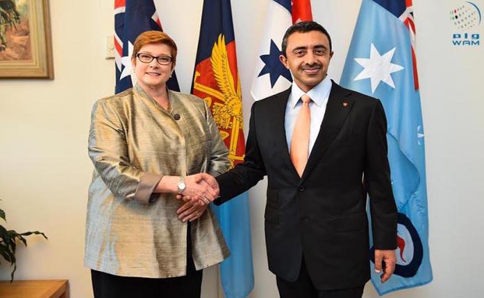 CANBERRA, 17th March, 2016 (WAM) -- H.H. Sheikh Abdullah bin Zayed Al Nahyan, Minister of Foreign Affairs and International Cooperation, met with Marise Payne, the Australian Defence Minister, yesterday in Canberra. During the meeting, they reviewed existing cooperation and friendship relations between the two countries, especially with regard to defence and military affairs and ways of strengthening and developing them. They also discussed the overall developments in the regional and international arenas and exchanged views on a number of issues of common concern, including cooperation in the fight against extremism and terrorism. The meeting was attended by Dr. Obaid Al Hairi Salem Al Ketbi, UAE Ambassador to Australia, and Sheikh Sultan bin Hamdan bin Zayed Al Nahyan, Director of the Department of East Asia and Pacific at the Ministry of Foreign Affairs and International Cooperation. – Emirates News Agency, WAM - http://www.wam.ae/en/news/emirates/1395292951546.html