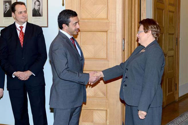 Riga: H.H. Sheikh Abdullah bin Zayed Al Nahyan, UAE Foreign Minister, yesterday met with Laimdota Straujuma, Prime Minister of the Republic of Latvia, in the capital, Riga.