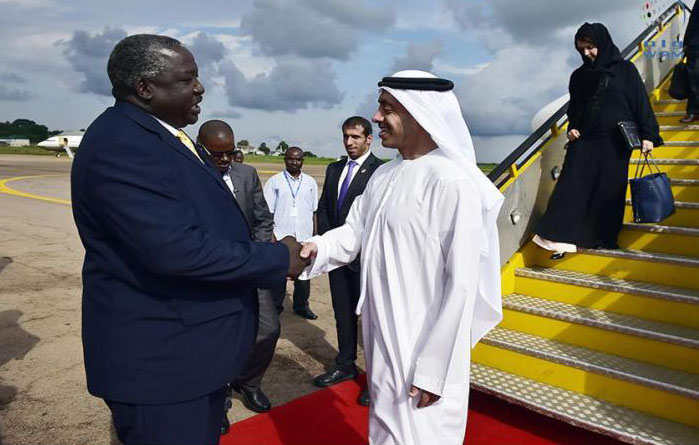 ENTEBBE, UGANDA, 10th June, 2015 (WAM) -- H.H. Sheikh Abdullah bin Zayed Al Nahyan, UAE Foreign Minister, has met Henry Oryem Okello, Ugandan Minister of State for Foreign Affairs, in the city of Entebbe. During the meeting, the parties discussed aspects of cooperation and strengthening the bonds of friendship between the UAE and the Republic of Uganda to reflect the keenness of the two sides and their aspirations to build a strategic partnership in all fields. Sheikh Abdullah said that his current visit to Uganda is an important new step to develop excellent relations between the two countries, stressing the importance of the exchange of high-ranking officials visits to forge closer ties, and take advantage of the strategic location and the great potential available in both countries. The Ugandan Minister said that his country is keen on strengthening the bonds of bilateral relations with the UAE, commending the stature achieved by the UAE globally. The meeting was attended by Reem bint Ibrahim Al Hashimy, Minister of State, and Sultan Ahmed bin Sulayem, Chairman of DP World. – Emirates News Agency, WAM – http://www.wam.ae/en/news/emirates/1395281658633.html