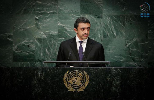 NEW YORK, 4th October 2015 (WAM) --- The United Arab Emirates has warned that the threat of terrorist organisations, most notably Daesh and AI-Qaeda-affiliated groups, transcends geographical boundaries and is a risk not only for this region but for all states and communities. This came in the statement of H.H. Sheikh Abdullah bin Zayed Al Nahyan, Foreign Minister of the United Arab Emirates, before the General Debate of the 70th Session of the United Nations General Assembly last night in New York. He also stressed that the UAE has played an effective role in international efforts to help affected countries to confront these threats. He said the country has been committed to supporting regional and international efforts aiming at combating extremism and terrorism through cooperation and coordination with regional and international partners. In this context, he commended AI-Azhar institution for its longstanding tradition in confronting extremist ideologies, and reiterated the principled position of the UAE to stand by the Egypt. The foreign minister said, "The recent political and economic achievements of the Government of Egypt are major steps towards its recovery, and positively assist the recovery and stability of the region." Speaking on the situation in Yemen, he said, "We also regard the restoration of full control of Bab AI-Mandab by the coalition forces and the Yemeni people yesterday and defeating the rebels, as another military success in securing this vital sea lane. It further marks the end of the control of the rebels and their supporters, while demonstrating their weakening presence in other strategic areas in Yemen." "We seek, with the international community, to restore the political process in Yemen in accordance with the agreed parameters, most importantly the GCC initiative and its implementation mechanism." He affirmed the UAE's continued support for the Arab coalition led by the Kingdom of Saudi Arabia and its commitment to enhancing the capacity of the Yemeni people to restore stability. He said the UAE is committed to supporting humanitarian efforts in Yemen. On Libya, Sheikh Abdullah bin Zayed expressed the UAE's deep concern regarding the ongoing tension and instability in Libya, which represent a major threat to security and stability in the region. The UAE stresses the need to lift the ban imposed on the capabilities of the elected Libyan Government to enable it to fight Daesh and other terrorist organisations and respond to trans-boundary threats. On Syria, the UAE foreign minister said the Security Council must fulfil its principal mandate and reach a consensus on a settlement for the Syrian crisis to ensure a political transition and the formation of a new government, which encompasses all components of the Syrian society. He also stressed the importance of the international community continuing to deliver humanitarian aid to the Syrian people. "The UAE affirms its humanitarian commitment to supporting the Syrian people and alleviating their suffering," H.H. Sheikh Abdullah bin Zayed said. On Iraq, the foreign minister renewed the UAE's support for the efforts of the Iraqi government towards achieving peace and stability and ending sectarian practices, and stress in this context the importance of implementing reforms to ensure inclusiveness, fairness and equality for all segments and components of the Iraqi society. H.H. Sheikh Abdullah bin Zayed reiterated the United Arab Emirates' rejection of Iran's continued occupation of the UAE three islands Greater Tunb, Lesser Tunb and Abu Musa. On the Palestinian issue, the foreign minister warned of the feelings of injustice and frustration resulting from the continued Israeli occupation of the Palestinian territories and the flagrant human rights violations committed by the occupation forces, provide extremist groups with an opportunity to exploit these serious humanitarian conditions and to spread their radical thinking and incite frustrated youth to implement their destructive agenda. The following is the full text of the statement of H.H. Sheikh Abdullah bin Zayed Al Nahyan, Minister of Foreign Affairs of the United Arab Emirates, before the General Debate of the 70th Session of the United Nations General Assembly in New York. "Statement of H.H. Sheikh Abdullah bin Zayed A! Nahyan, Minister of Foreign Affairs of the United Arab Emirates, before the General Debate of the 70th Session of the United Nations General Assembly New York, 2nd October 2015.: Mr President, It is my pleasure to congratulate your Excellency on your election as President of the seventieth session of the General Assembly, and to affirm that the United Arab Emirates stands ready to provide the fullest support during your presidency. Mr President, This year's session is of particular significance as it marks the seventieth anniversary of the United Nations and the commencement of a new chapter that builds on the achievements of the MDGs through the adoption of the 2030 Sustainable Development Agenda by Heads of State and Government. The UAE welcomes this ambitious Agenda and believes that it will transform the world over the next 15 years. Despite the progress made over the past seven decades, the United Nations must now play a greater role in addressing the grave security challenges that risk threatening its achievements. The challenges facing the Middle East today, particularly extremism, terrorism, interference in the internal affairs of States and non-respect for the sovereignty of States, demonstrate that this Organisation has not yet fulfilled its primary objective of maintaining international peace and security. Therefore, it is incumbent on all of us as members of this Organisation to be committed to the principles of the United Nations' Charter, most importantly its principles of sovereignty and non-interference, the promotion of dialogue and moderation, and playing an active and responsible role with regard to regional and internati