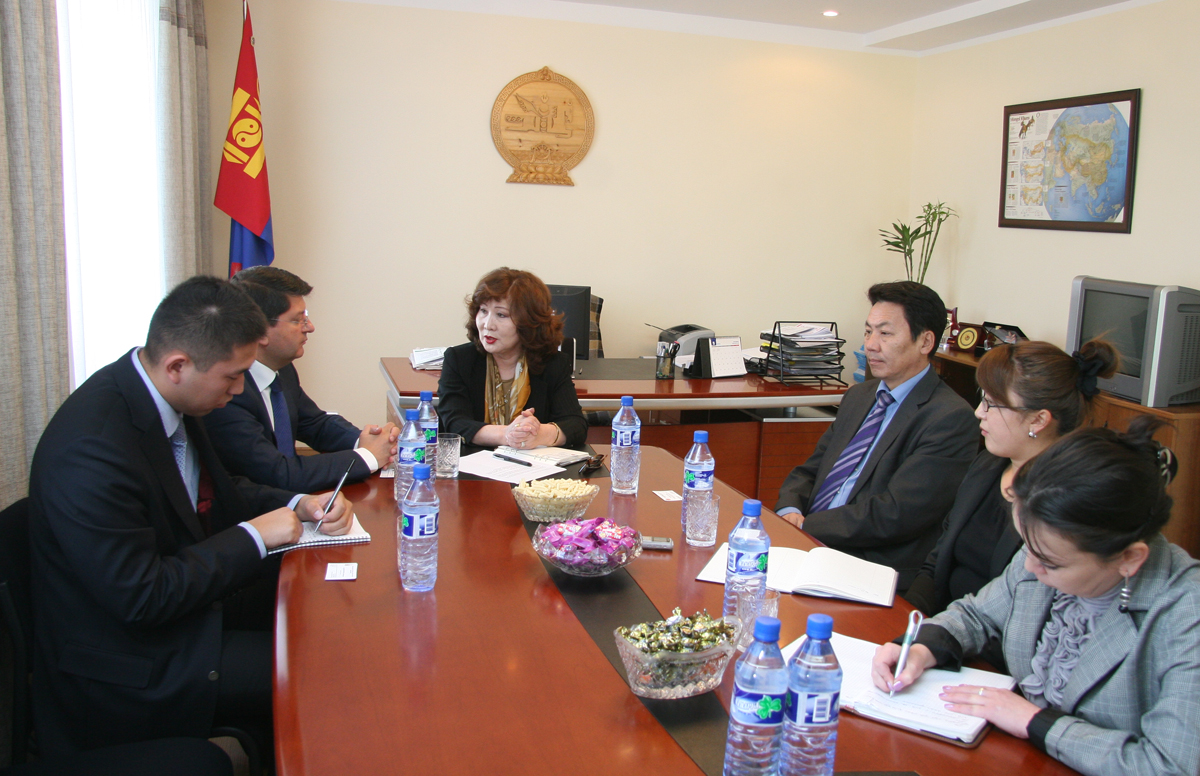 The Director-General of the MONTSAME Ms S.Altantsetseg received the Ambassador. She thaked him for visiting our Agency and then spoke about the MONTSAME's history, activities and policy tendencies.