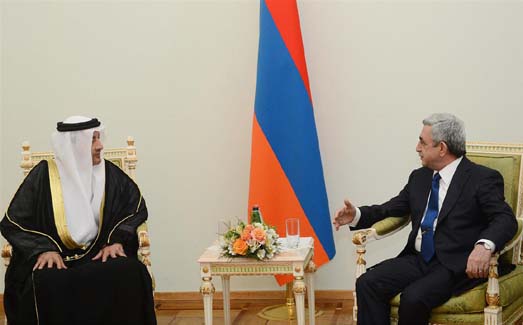 Yerevan, May 29, 2013 (WAM) - : The President of Armenia, Serzh Sargsyan, has received the credentials of the UAE Ambassador to Iran and Non-resident Ambassador to Armenia, Saif Mohammed Obaid Al Zaabi. Al Zaabi conveyed the greetings and appreciation of President His Highness Sheikh Khalifa bin Zayed Al Nahyan and the UAE Vice President and Prime Minister and Ruler of Dubai, His Highness Sheikh Mohammed bin Rashid Al Maktoum, and their wishes for further progress and prosperity for the Armenian President and people. The President of Armenia reciprocated the greetings and expressed appreciation for the UAE president, Vice President and the people of the UAE. The two sides hailed the relations between the two friendly countries, stressing the importance of developing them even further. Earlier, the UAE ambassador met with the Armenian Foreign Minister, Edward Nalbandian, and presented him with a copy of his credentials after which they exchanged views on issues of mutual interest. – Emirates News Agency, WAM