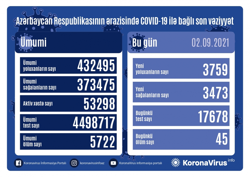 “The overall confirmed cases in Azerbaijan have reached 432,495 with 373,475 recoveries and 5,722 deaths, while treatment of 53,298 others is underway.